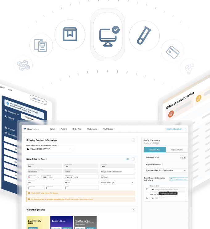 Ordering, reporting, tracking, analytics and automate user’s workflows. From sample receiving to reporting to billing.