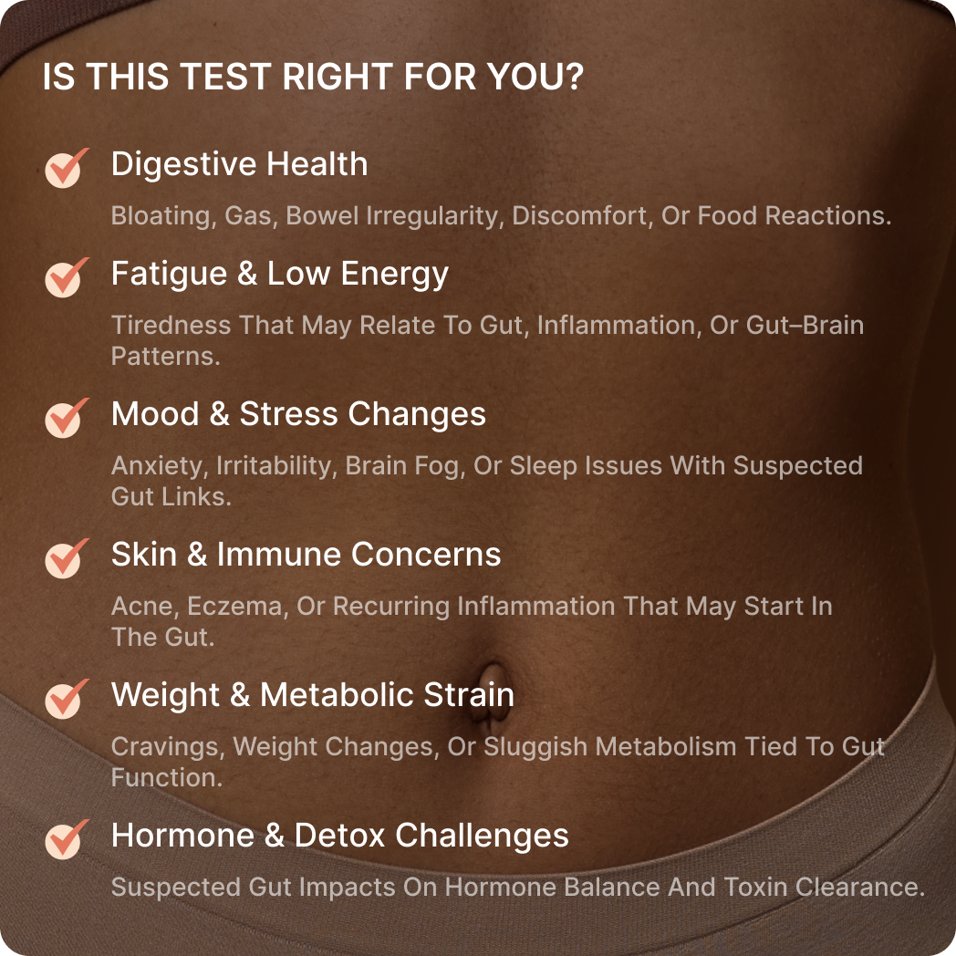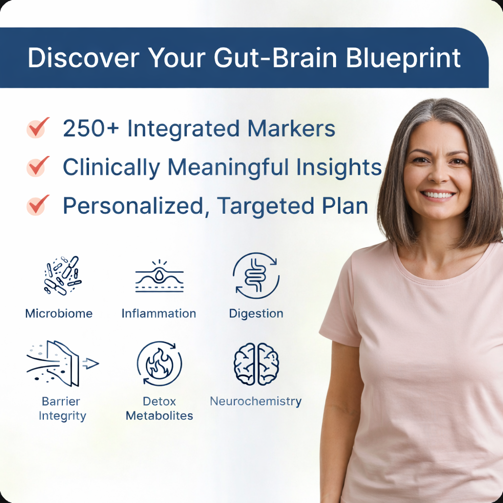 Gut Zoomer delivers a comprehensive view of how your gut and gut–brain axis are working, integrating microbiome balance, pathogens, inflammation, digestion, permeability, detox metabolites, and neurotransmitter patterns. By turning complex gut and neurochemical data into a clear, structured report, it helps you and your provider connect gut-driven contributors to symptoms and design targeted, sustainable strategies for better digestion, steadier mood and energy, and long-term resilience.